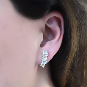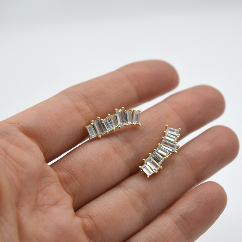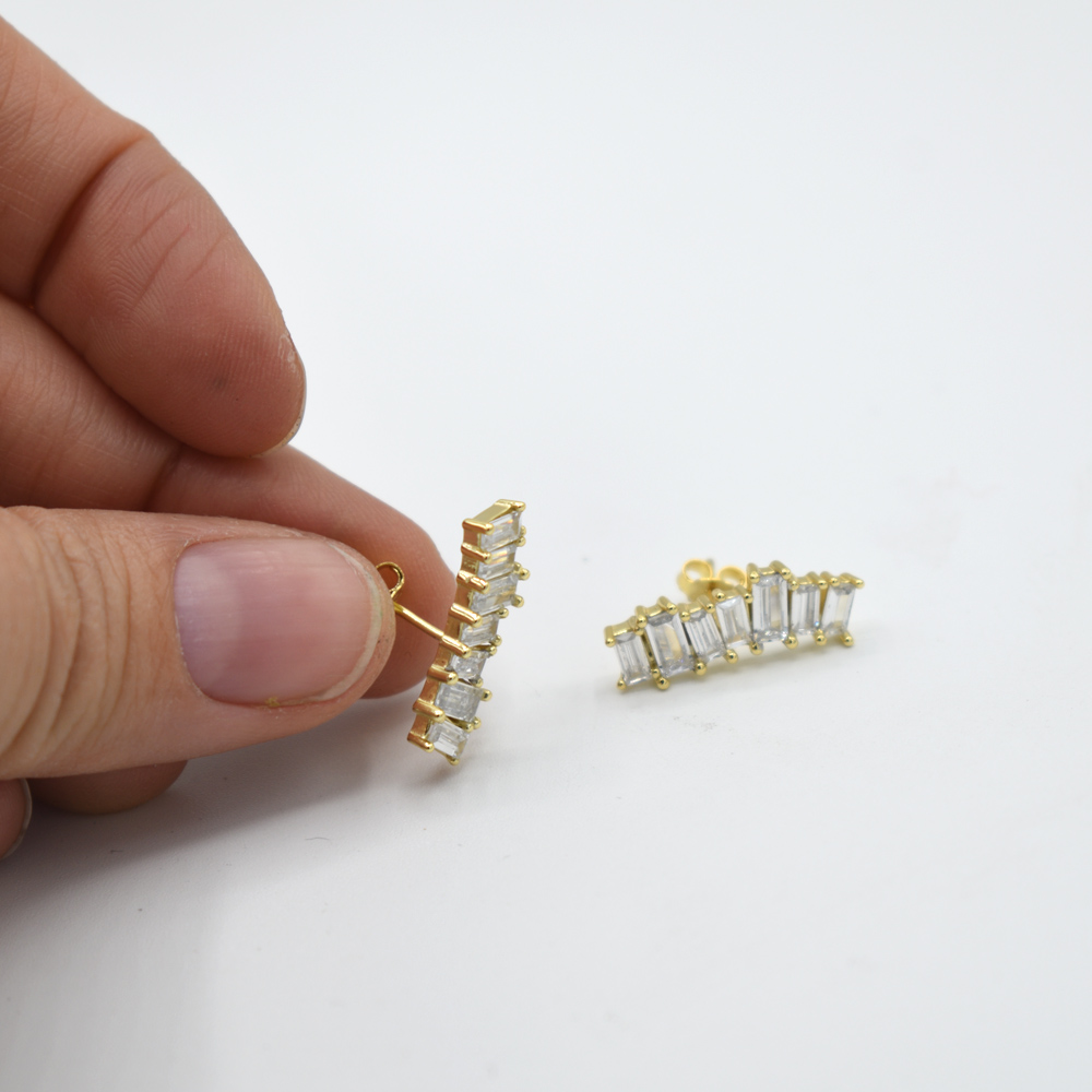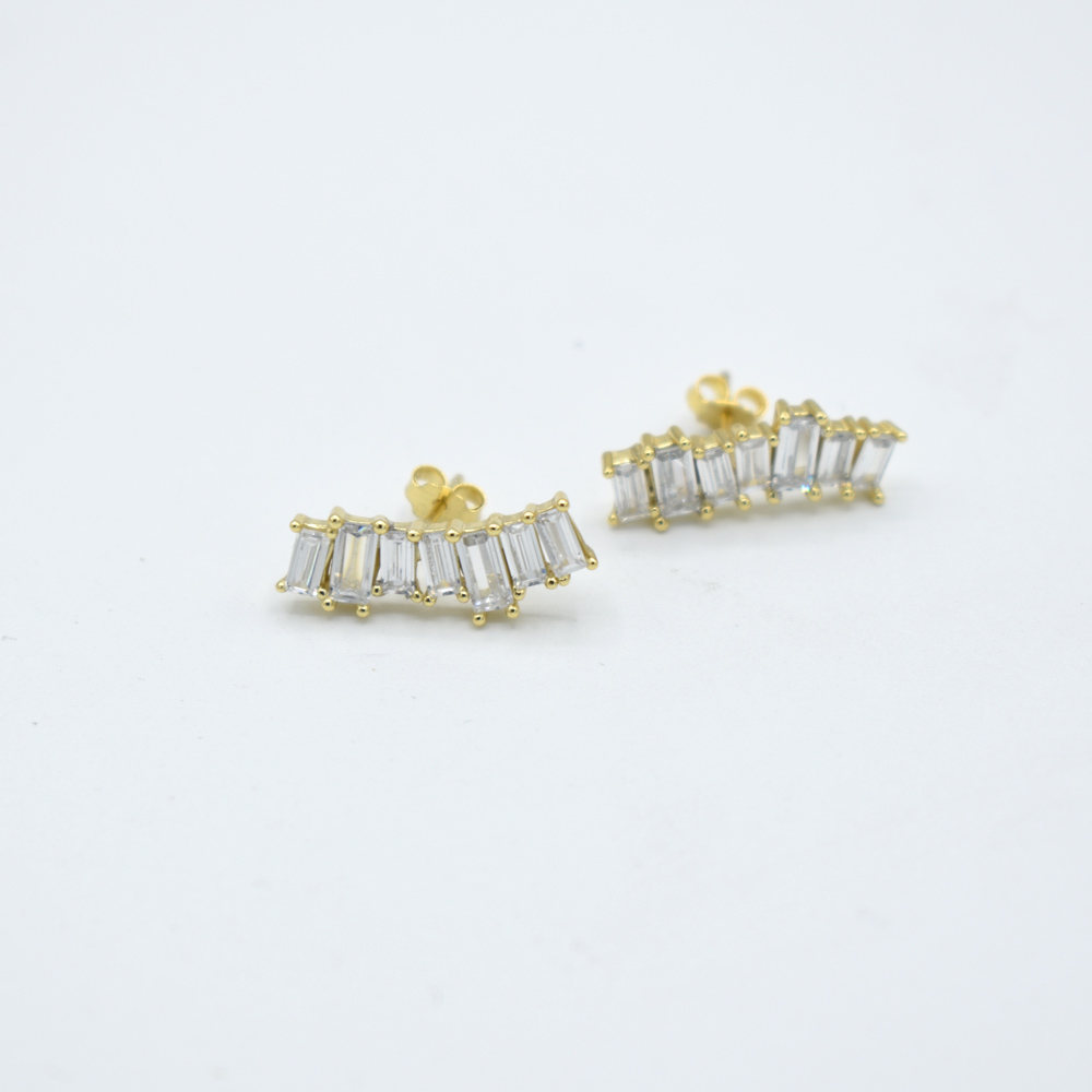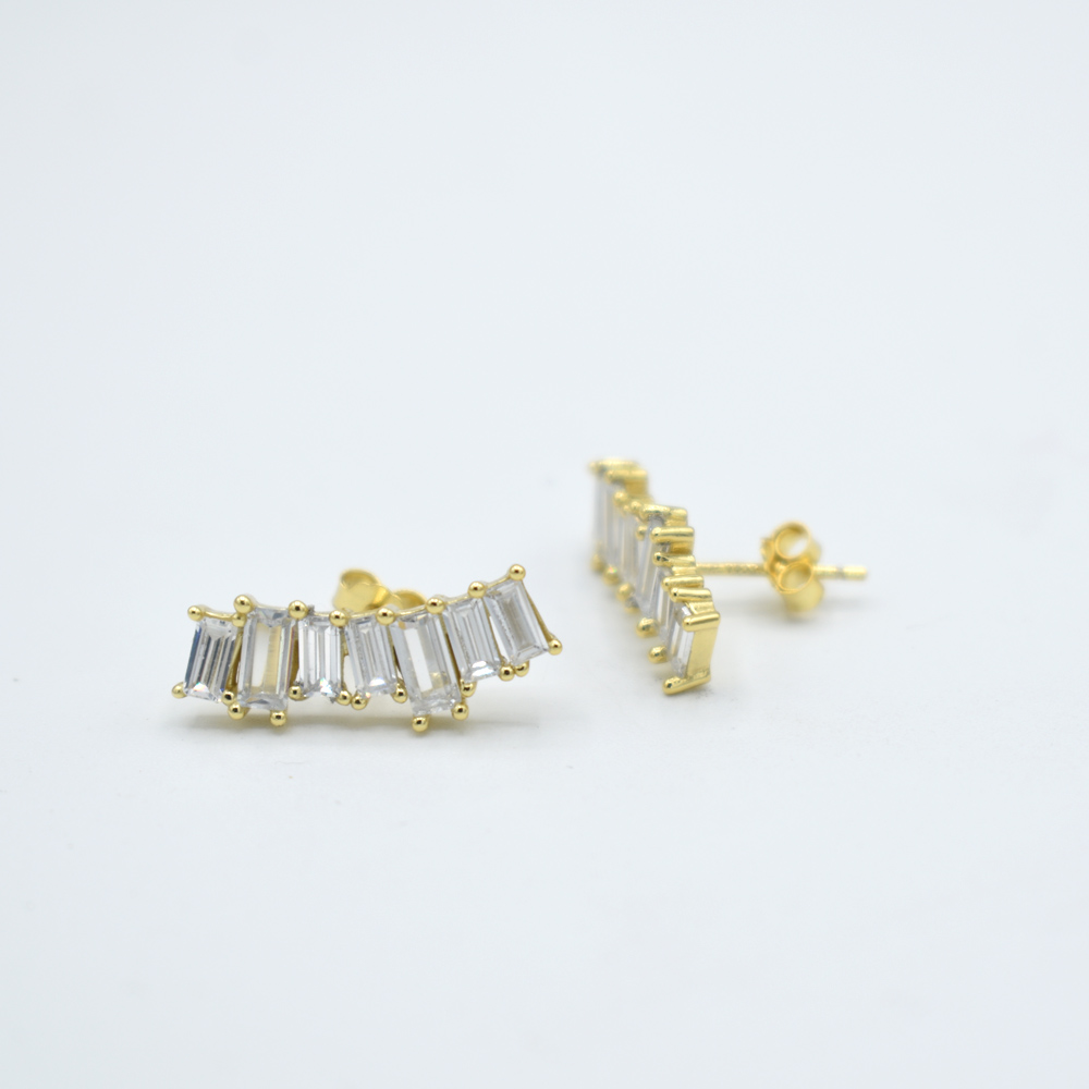 Par de Aretes climber, puedes usarlo colgando o hacia arriba, lleva circonias en corte baguette de diferentes tamaños, hermoso y elegante especial para ti, fabricado en plata 925 con baño de oro de 18K