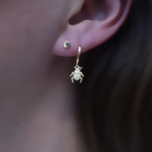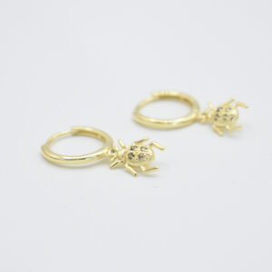 Aretes tipo huggies con dije de escarabajo el cual esta montado con pequeñas circonias, para darle ese toque brillante y hermoso, usalo como piercing o combinalo con ls aretes de mandara, Estos aretes estan fabricados con la mejor calidad y cuidado, son delicados y hermosos si buscas algo diferente y especial! son para ti! hechos en plata 925 con baño de oro de 18K