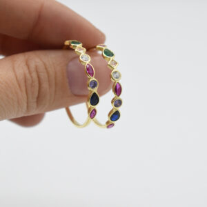Par de Arracadas hermosas y delicadas, hechas en plata 925 cocn baño de oro de 18K, Resalta tu look con estas hermosas arracadas fabricadas con diferentes colores y formas de circonias que te harán lucir hermosa, y única!, combinalas con un look sobrio y resalta tus accesorios de Mandara.