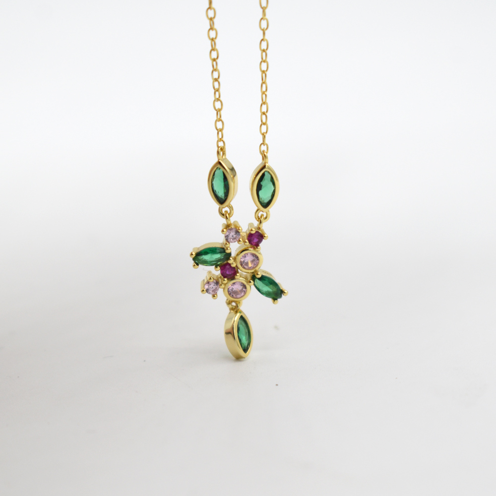 Hermoso collar asimetrico con diferentes circonias tanto en forma y en colores, perfecto para combinar con cualquier atuendo, excelente regalo para ti o para alguien muy especial, esta fabricado en plata 925 con baño de oro de 18K.