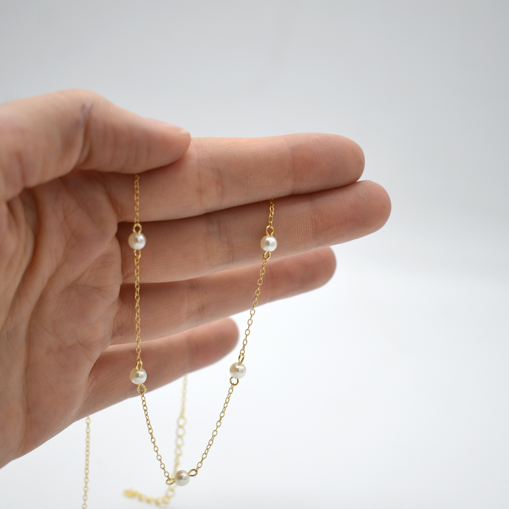 Collar con perlitas colgando en plata 925 con baño de oro de 18K