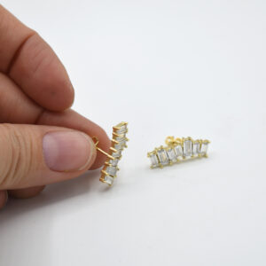 Aretes Baguete Climber plata 925 con baño de oro 18k